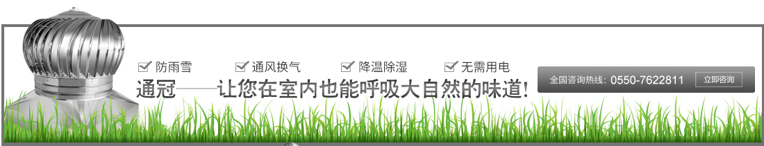 天長市通冠無動力風機有限公司,是集研發(fā)、生產(chǎn)、銷售于一體的,專業(yè)無動力風機生產(chǎn)廠家。公司坐落于205國道南京與揚州之間,位于省級高新經(jīng)濟技術工業(yè)園,交通便利?!巴ü凇庇兄恢Ъ夹g精湛、服務非凡的隊伍。所有一線技術工人技術熟練、質量意識強。公司嚴格執(zhí)行ISO9000質量管理體系,一貫貫徹“以質量為生命”、“以信譽為根本”、“以服務為基礎”的理念···[查看詳細]